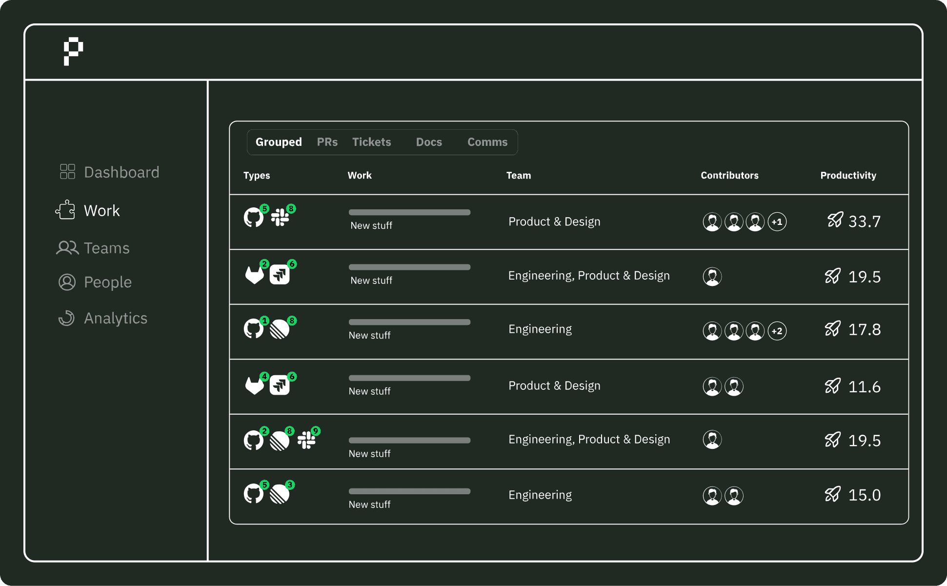 This view shows what “work-based performance” looks like in practice. It connects contributions to real output, giving managers context that feedback-only tools can’t provide, especially when teams scale.