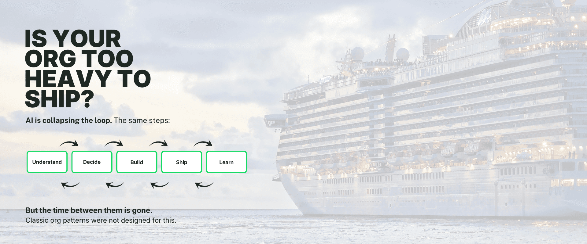 That shift makes some classic structures feel heavier than they need to be. In some contexts, you can ship a thin slice, learn from reality, and iterate faster than you can “perfect” your way through weeks of artifacts, handoffs, and alignment. This doesn’t mean every company should shrink or abandon rigor. Context is still king. But it does mean we need to be honest about what’s actually slowing us down and whether we’re about to scale the wrong thing.