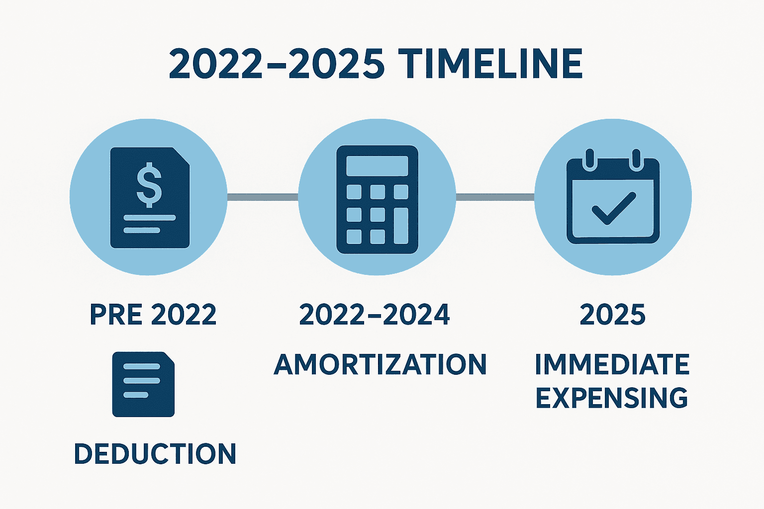 Pre-2022: The Golden Era: Companies could fully deduct R&D expenses in the year they occurred. Spend $2M on engineering in 2021? Deduct the full $2M in 2021. This aligned tax treatment with business reality.